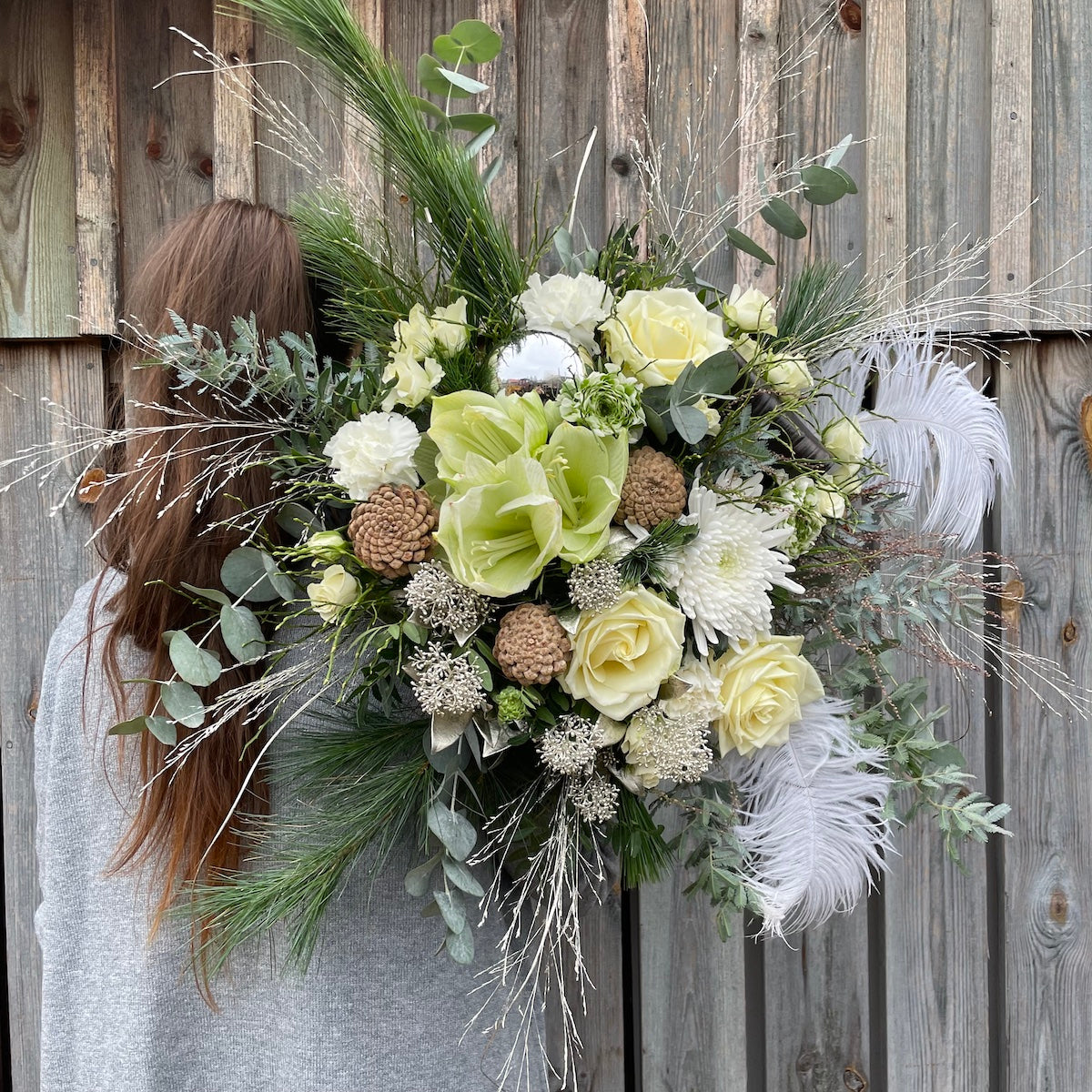 Extra glitter och glans! Till din glamorösa vän eller vid högtider kommer buketten till sin rätt. Floristen skapar en lyxig och festligt bukett efter säsong! Har ni önskemål om färg, skriv gärna det i övrigt-rutan.